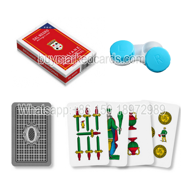 As for Dal Negro Piacentine back marked cards, we printed the card marking ink back of deck, so that these invisible ink marking can not be seen by our naked eyes except we wear the IR contact lenses or perspective sunglasses.