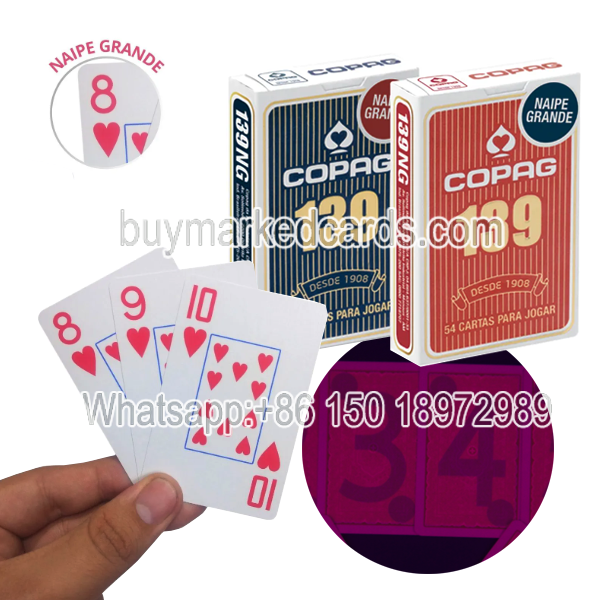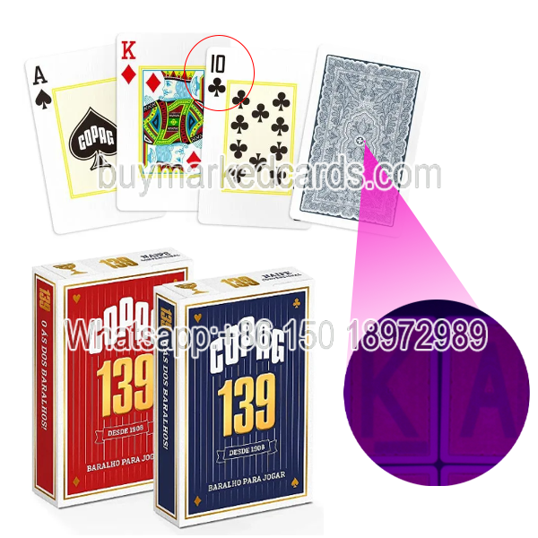 Copag 139 playing cards is not only to be made as the marked cards for IR contact lenses or luminous sunglasses to read, but also to be made as the marked cards for poker scanning camera and poker scanner analyzer to scan. With good marking quality, it can be read by contact lenses instantly, and the barcode can be scanned by the poker scanner within 1 second. It is more practical than ordinary marked cards.