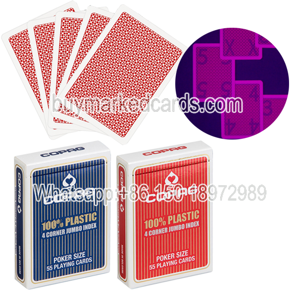 Copag 4PIP playing cards is not only to be made as the marked cards for IR contact lenses or luminous sunglasses to read, but also to be made as the marked cards for poker scanning camera and poker scanner analyzer to scan. With good marking quality, it can be read by contact lenses instantly, and the barcode can be scanned by the poker scanner within 1 second. It is more practical than ordinary marked cards.