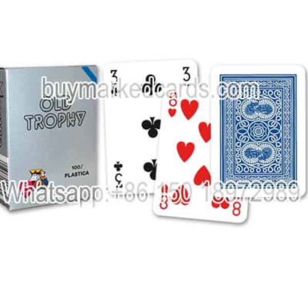 Modiano Old Trophy playing cards is not only to be made as the marked cards for IR contact lenses or luminous sunglasses to read, but also to be made as the marked cards for poker scanning camera and poker scanner analyzer to scan. With good marking quality, it can be read by contact lenses instantly, and the barcode can be scanned by the poker scanner within 1 second. It is more practical than ordinary marked cards.