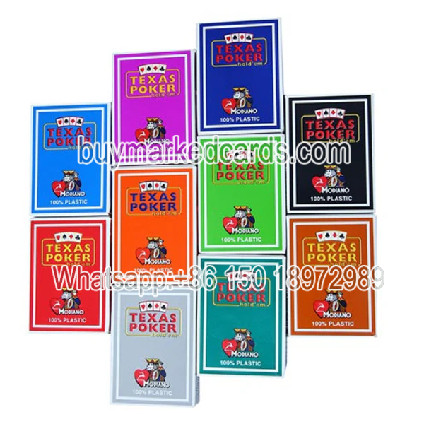 | Playing cards features: 1. Color pattern on the back of cards: 10 colors 2. playing cards Texas holdem model, 100% plastic 3. the deck contains 52 cards and 2 jokers 4. Card size: 63*88 mm-standard size for poker cards. |