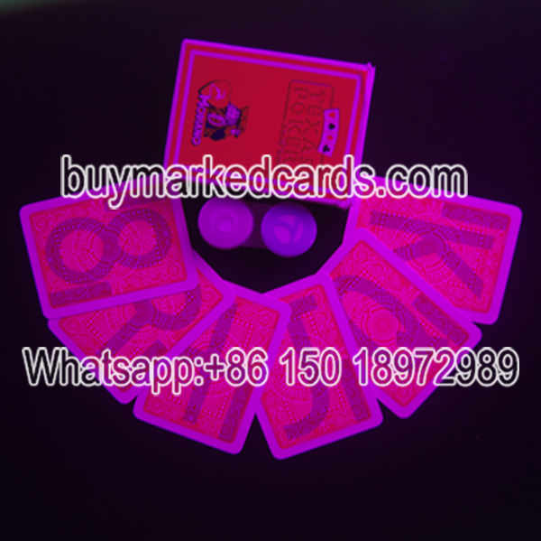 When you wear special contact lenses, you can read the marks in the middle of the back of the cards, but the naked eyes cannot see them.