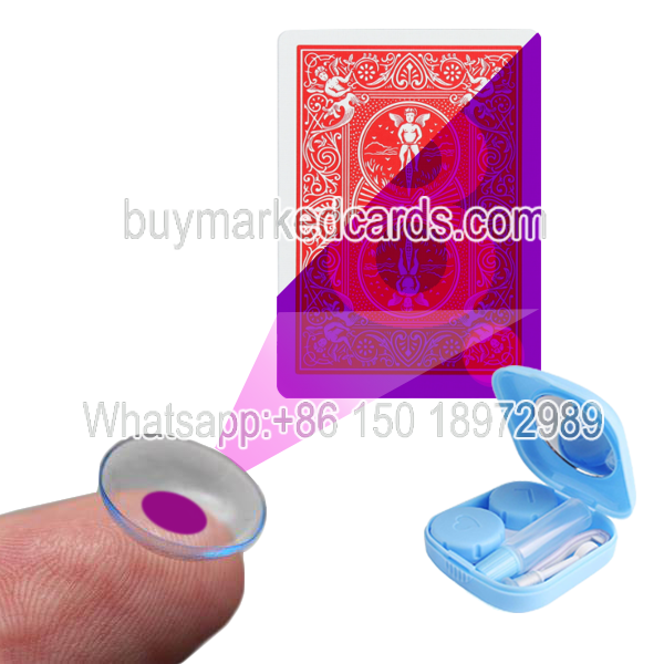 The invisible ink can't be read with the naked eyes, you need some devices to assist you. Contact lenses for seeing the mark is one of the poker readers. It is widely used in poker games such as Texas Hold'em, Baccarat. There are many sizes and colors of one to one contact lenses for your options. You can wear the lens easily and will not discovered by others. It brings more convenient to you. It won't fog up in cold weather and it gives you a wider field of view. Poker lovers and magicians use them a lot. However, if your friends also have the same pair of contact lenses, he can see the luminous mark of the deck, you can't win anything in a game or perform well. Thanks to advanced technology and our professional technicians, we have developed new kind of contact lenses which is customized for the unique marked deck.